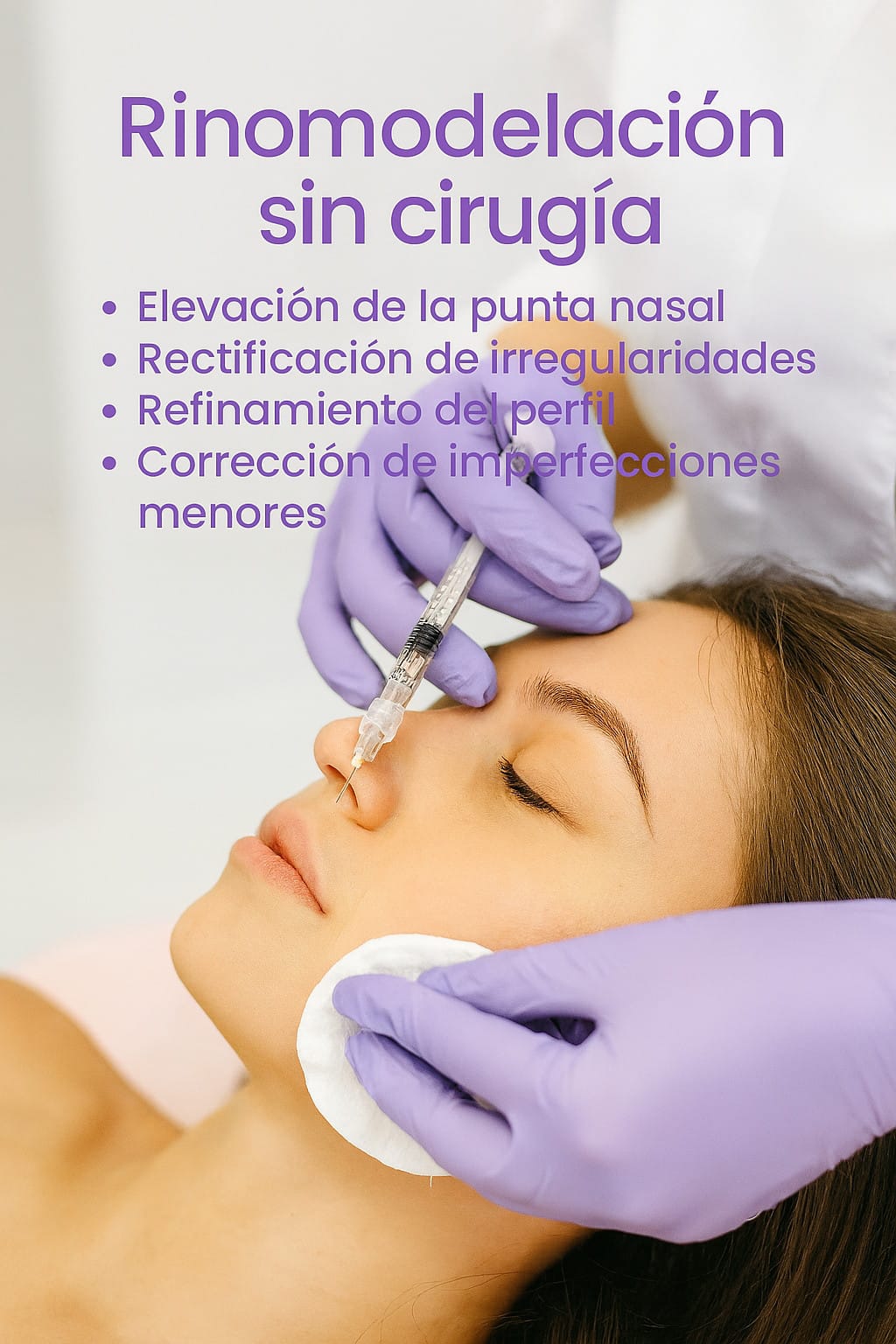 Rinomodelación La rinomodelación es la solución perfecta para quienes quieren retocar la nariz sin cirugía. ¿En qué consiste la Rinomodelación? La rinomodelación es