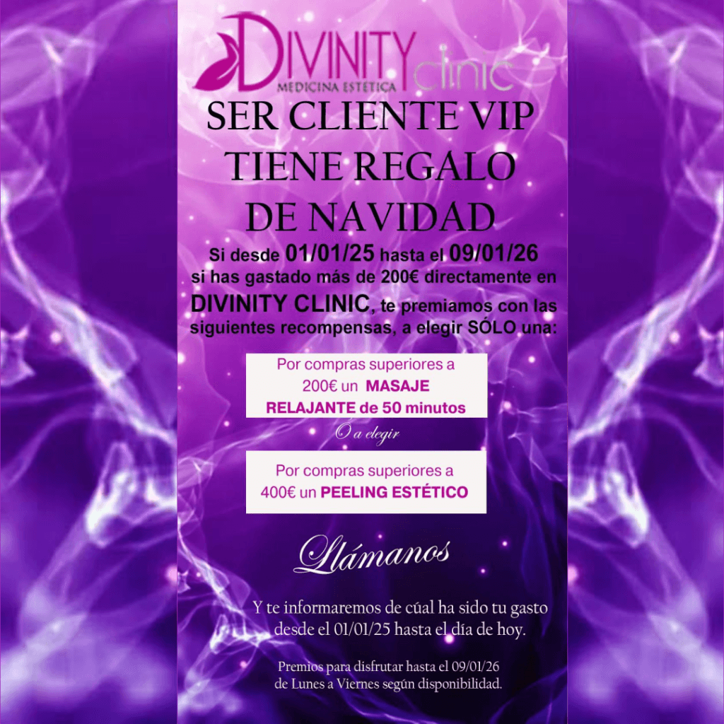 Ser Cliente VIP tiene Regalo de Navidad. ‼️𝗣𝗥𝗢𝗠𝗢𝗖𝗜𝗢́𝗡 REGALO DE NAVIDAD ‼️ 🎄🎁🎄🎁🎄🎁 DESDE NUESTRO CENTRO MÉDICO 𝗗𝗜𝗩𝗜𝗡𝗜𝗧𝗬 𝗖𝗟𝗜𝗡𝗜𝗖, queremos agradecerte tu confianza mantenida con nosotros durante los últimos años….